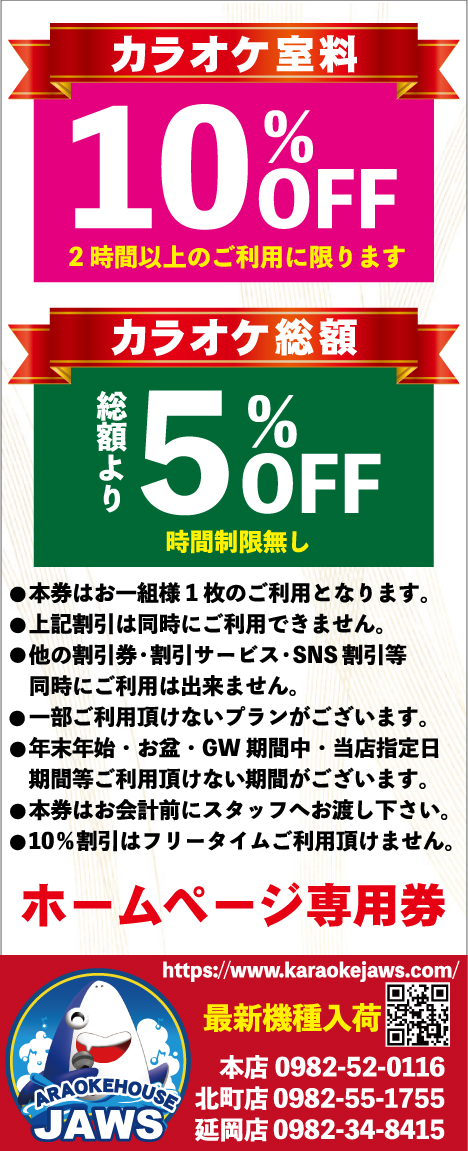 カラオケジョーズは延岡・日向を中心に低料金で楽しめるお店作りを目指しております。