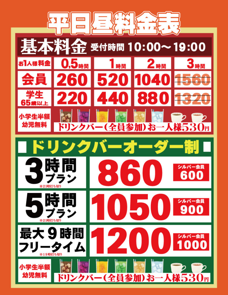 ※会員様のドリンクバーご注文が無い場合、幼児へのドリンクご提供はできません。