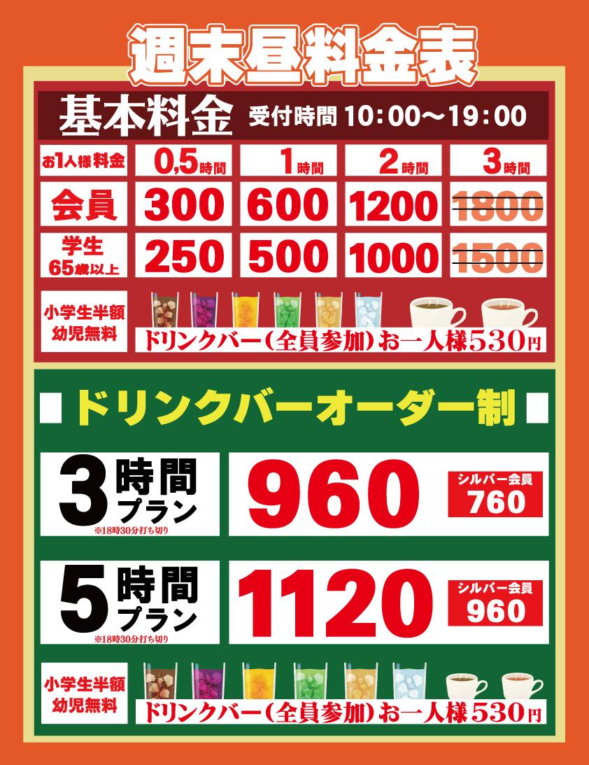 ※会員様のドリンクバーご注文が無い場合、幼児へのドリンクご提供はできません。